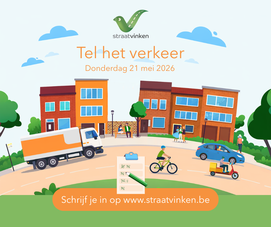 De achtste editie van Straatvinken vond plaats op 22 mei 2025. Dit jaar tellen we al voor de negende keer op donderdag 21 mei 2026. Op die donderdagnamiddag van 17 tot 18 uur wordt in duizenden straten in Vlaanderen weer het verkeer in kaart gebracht. Uw gemeente doet toch ook (opnieuw) mee? U kunt zich aanmelden als deelnemend bestuur. We houden u vervolgens op de hoogte van het onderzoek en vermelden uw deelname op onze website en in onze persberichten. Aan voorgaande edities deden steeds een 100-tal lokale besturen mee.